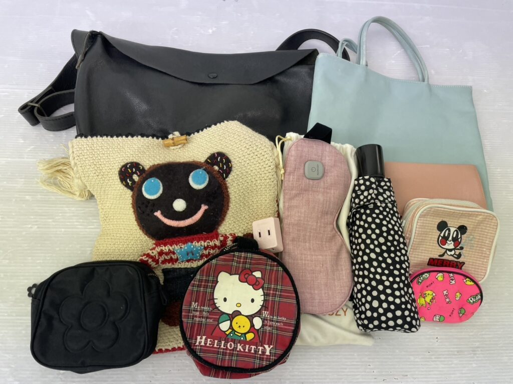 バッグ、ポーチ、折り畳み傘、お人形、アクセサリーケース、ハンカチ、お弁当箱、などの生活用品が届きました